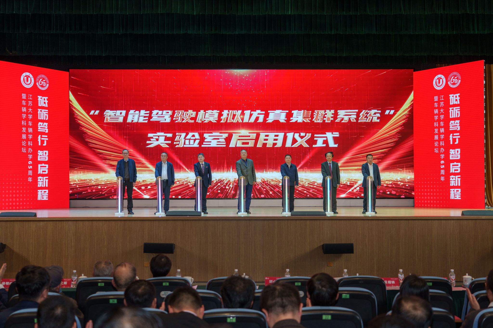 论坛上举行了“智能驾驶模拟仿真集群系统”实验室启用仪式,钱明华、张星、邹小波、陈龙、贝绍轶、许林、高一鹏等校友代表共同启动实验室运行按钮。