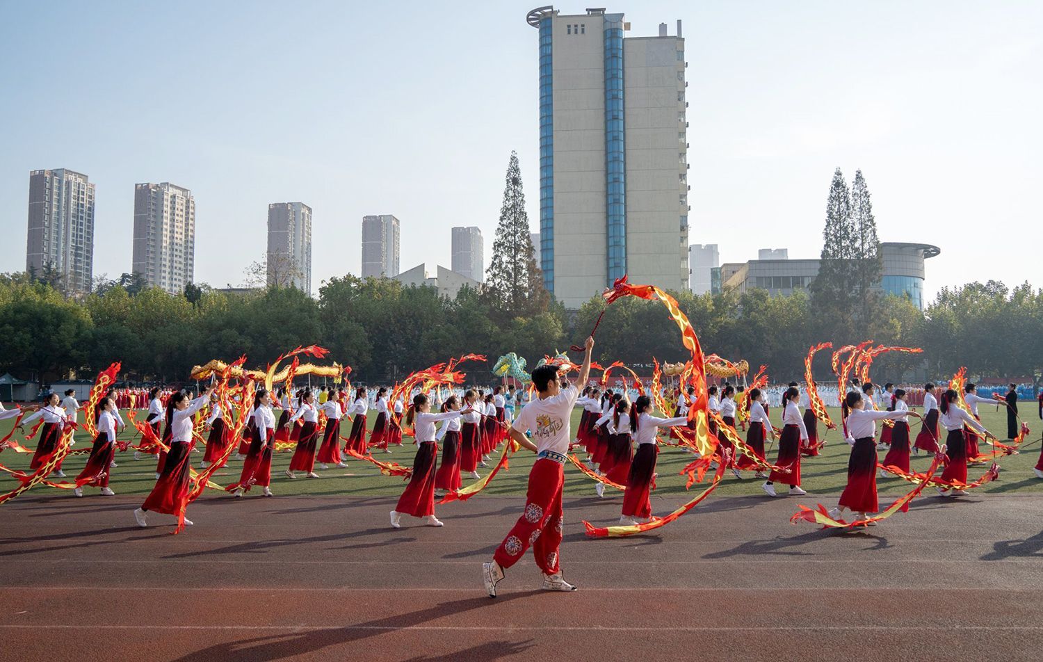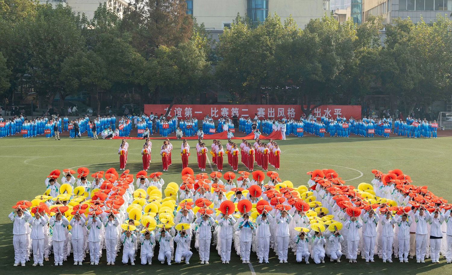 张济建宣布开云手机平台第二十二届运动会开幕。开幕式上,学生进行了舞龙舞狮、排舞表演,教职工进行了太极扇等表演。