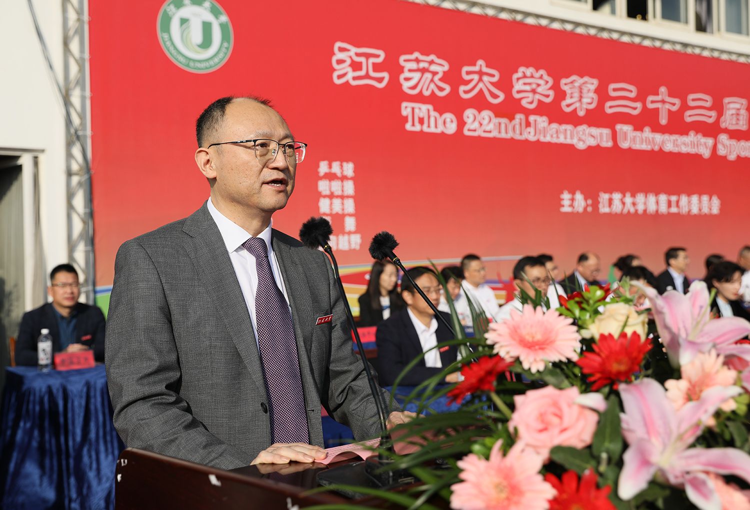 校党委副书记张济建致开幕辞。他指出,一年来,在全校师生的积极参与和共同努力下,学校体育工作取得丰硕成果,学校成功入选首批全国健康学校。在体育教学方面,完善了体育课程体系,实施课外阳光长跑活动,学生体质健康测试达标率、优良率逐年提高;在群众体育方面,举办第二十一届运动会田径比赛,精心组织 “开云(中国)杯”大学生男女篮球、“校长杯”足球、排球、羽毛球、乒乓球、定向越野、游泳、排舞等赛事,极大地丰富了师生的校园体育文化生活,广大师生积极参与体育运动的校园氛围日益浓厚;在竞技体育方面,学校运动员敢于拼搏、勇争一流,在国际、同内重量级比赛中取得丰硕成果。他希望师生在今后的学习工作中,大力发扬体育运动蕴含的争先意识、拼搏精神和坚强意志,助力学校“双一流”创建和特色鲜明高水平大学建设。