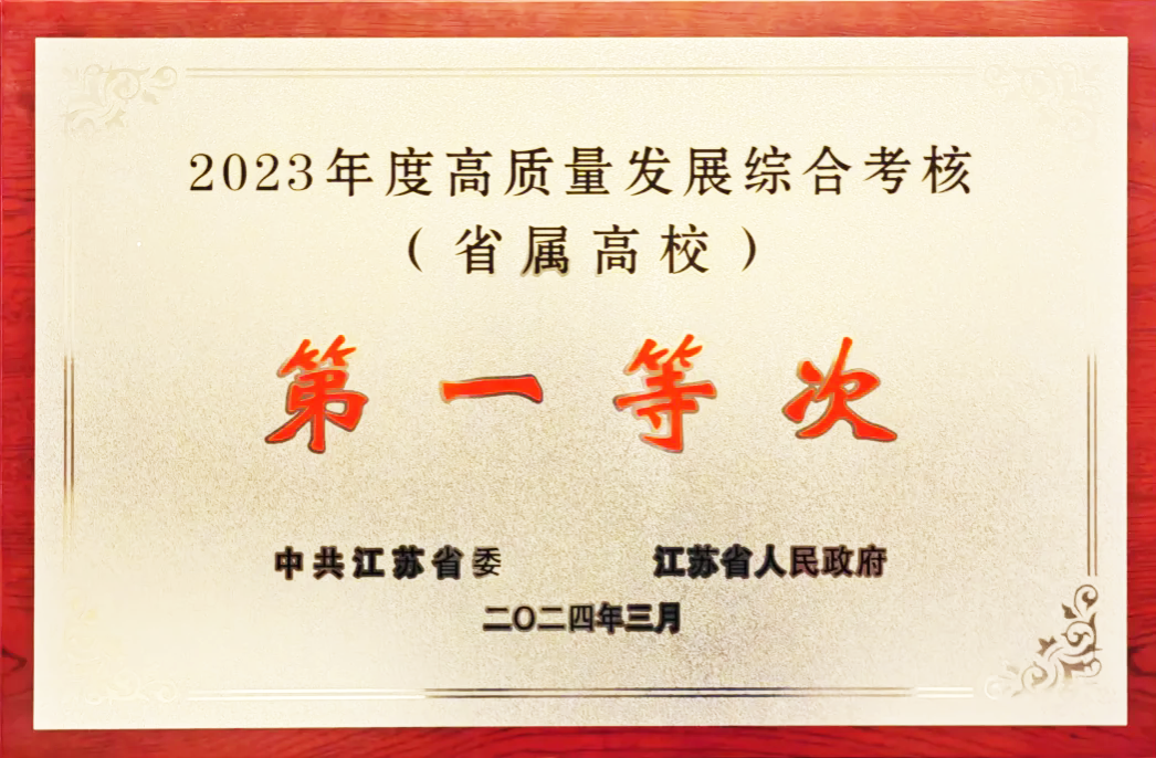 3月25日,全省2023年度高质量发展总结暨2024年工作推进会议在南京召开,会议通报了江苏省2023年度高质量发展综合考核结果。开云手机平台再次上榜,荣获省属高校高水平大学组第一等次,这是学校连续4年获此殊荣。校党委书记李洪波在南京主会场参加会议,作为省属高校高水平大学组第一等次唯一的代表,现场登台领奖。