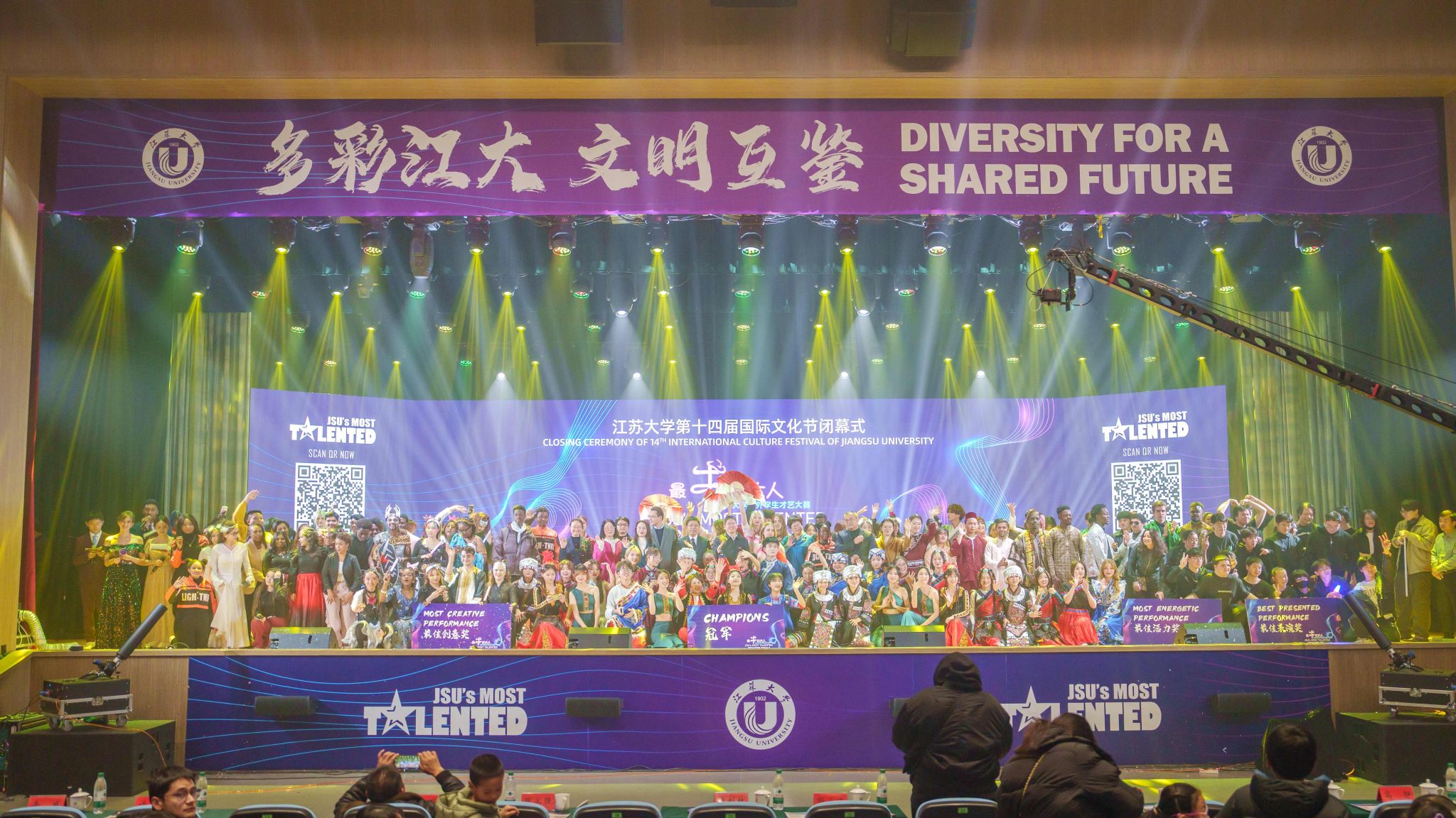 12月7日,第十四届国际文化节闭幕式暨2024“最牛开云(中国)人”中外学生才艺大赛总决赛在大礼堂落幕。总决赛由校党委宣传部、校团委、海外教育学院联合主办,开云手机平台党委常委、副校长邹小波,镇江市人民政府外事办公室主任卢利林,学校相关部门负责人出席闭幕式。1600余名中外师生齐聚一堂,共同观看比赛并参与了现场投票评比。
