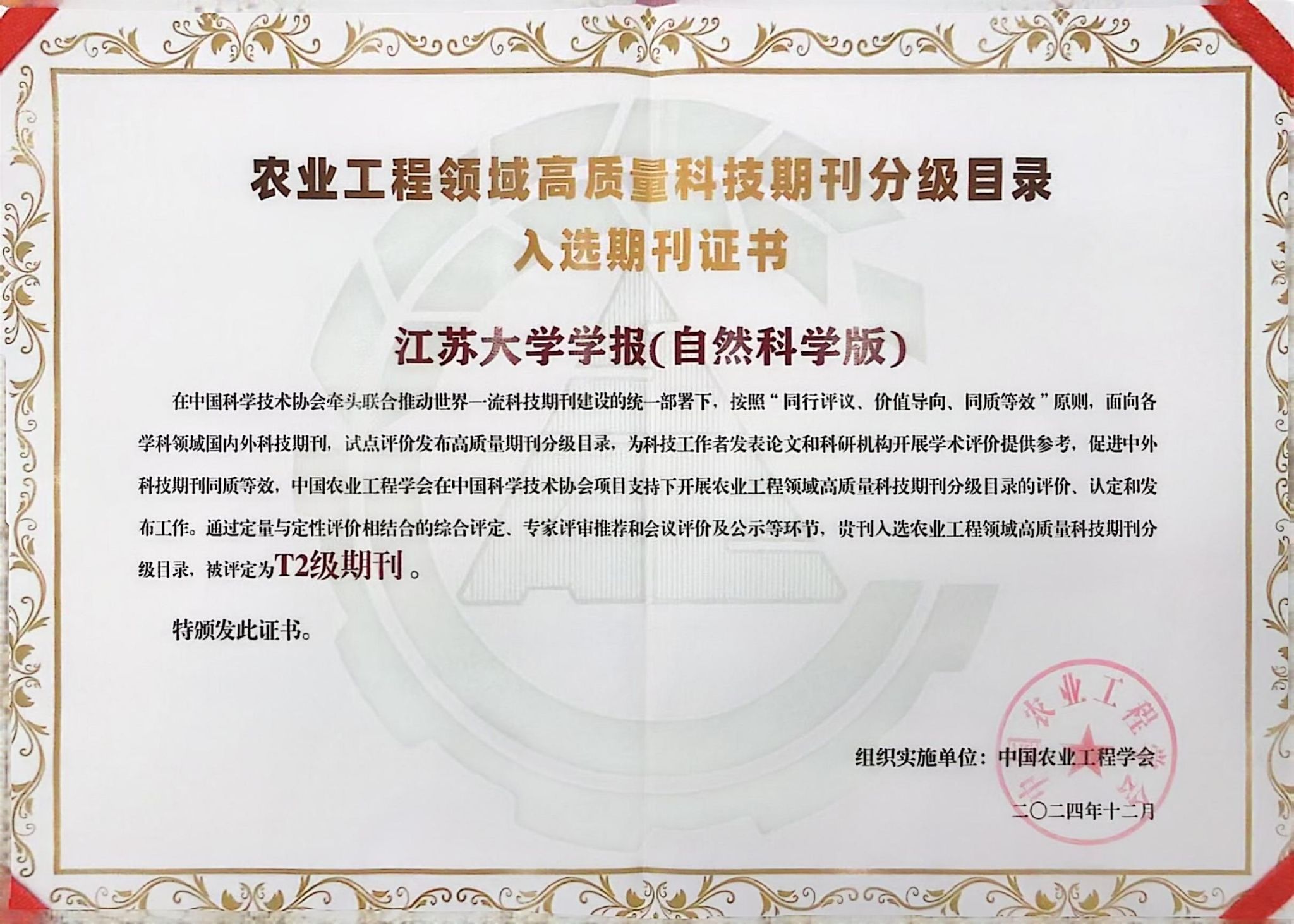 近日,中国农业工程学会在中国农业科学院国家农业图书馆召开发布会,正式发布其编制的“农业工程领域高质量科技期刊分级目录”,我校主办的《排灌机械工程学报》《开云手机平台学报(自然科学版)》双双入选,分别位列T1级和T2级。