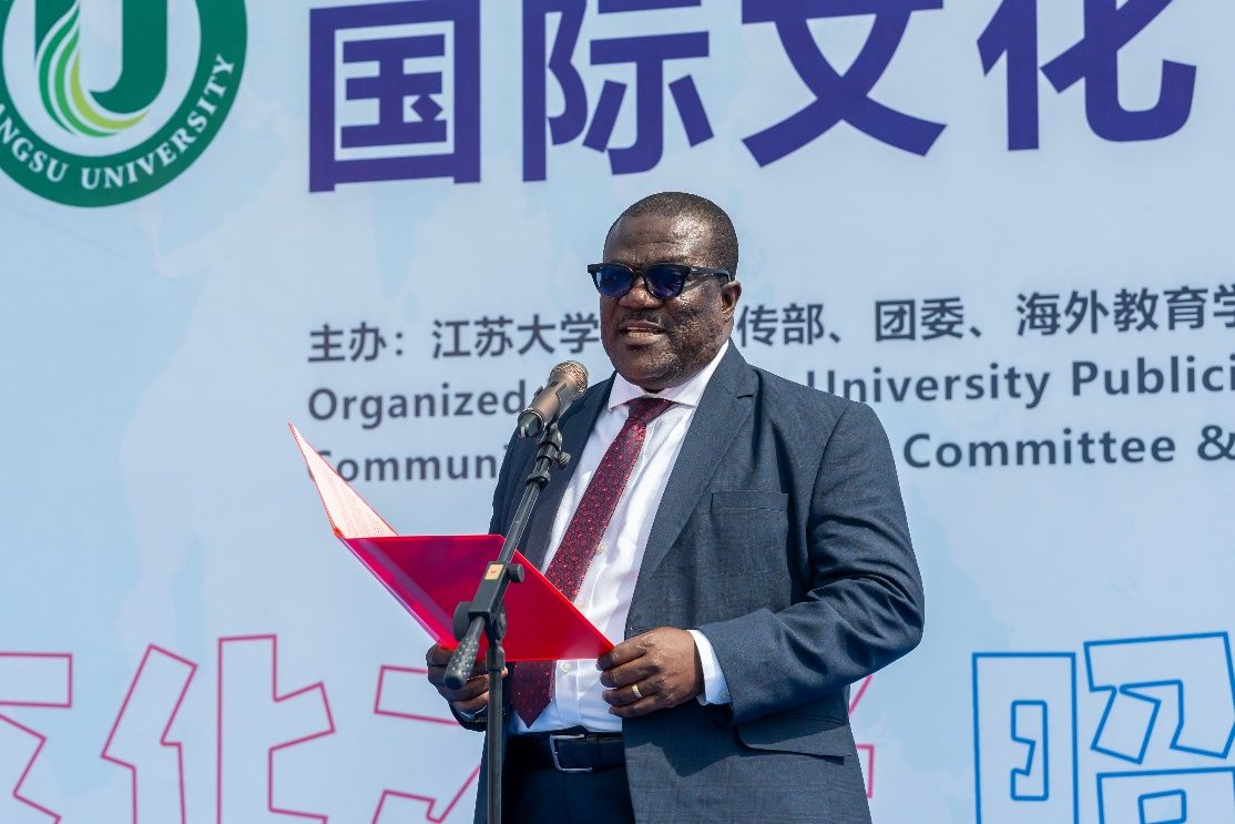校党委书记李洪波,党委副书记张济建,党委常委、副校长杨道建、任旭东、蔡英凤,摩洛哥驻华大使阿卜杜勒卡德尔·安萨里,加纳驻华使馆临时代办亚历山大·本-阿夸亚,坦桑尼亚驻华使馆公使扎伊纳布·祖贝里·马索罗及其他外交官代表,江苏省教育厅对外合作与交流处四级调研员李勤径,江苏省高教学会外国留学生教育管理研究委员会副理事长兼秘书长张海军,镇江市委宣传部、镇江市外办、镇江市出入境等相关政府部门代表,苏州汇川技术、美兰集团、开云(中国)源等企业代表以及学校相关部门主要负责人等出席开幕式。