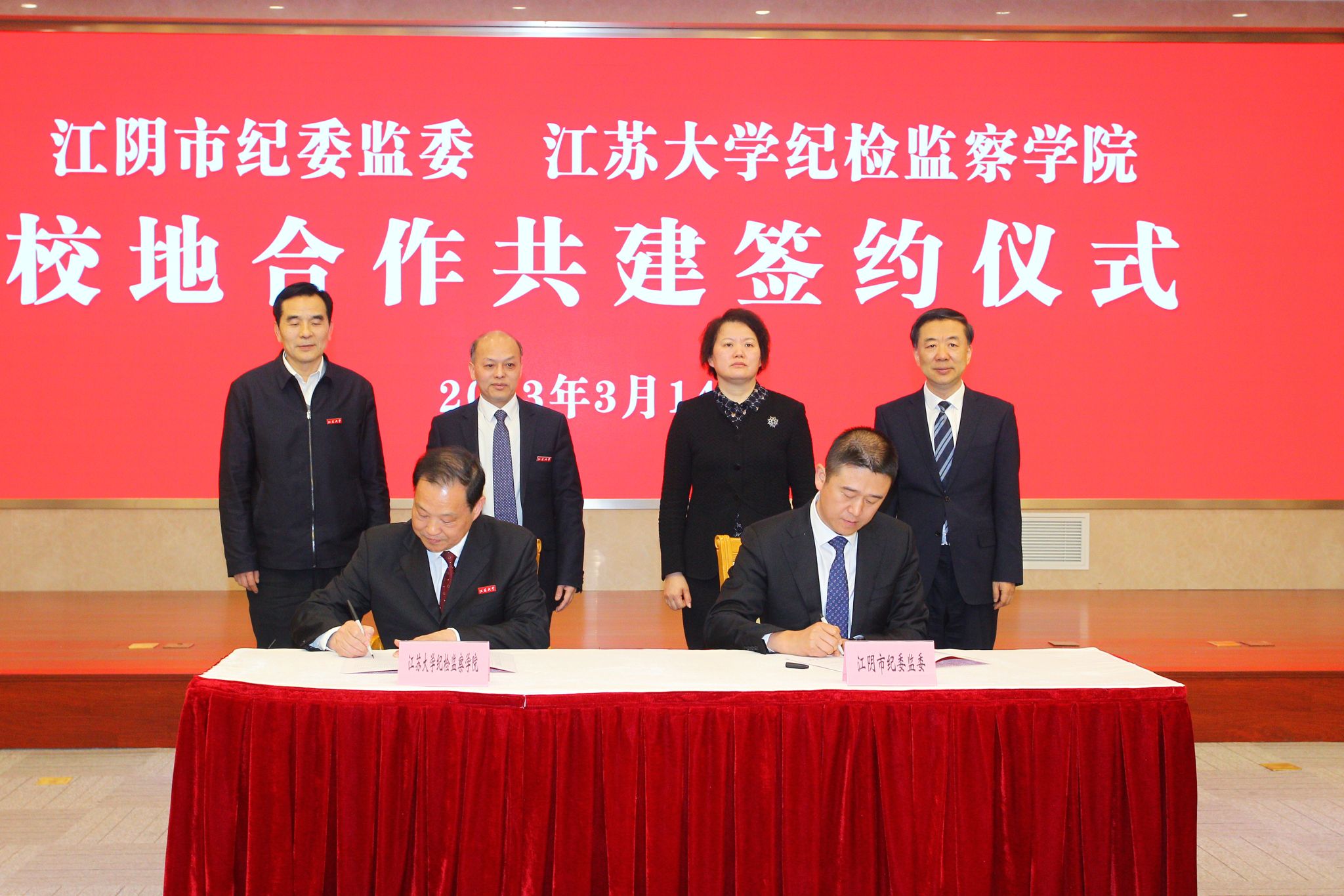 校党委副书记、校长颜晓红,校党委常委、纪委书记、派驻监察专员、纪检监察学院院长高庆国,校党委常委、副校长全力,无锡市委常委、市纪委书记、市监委主任周凤琴,无锡市委常委、江阴市委书记许峰,江阴市领导靳佳高、杭成出席签约仪式。