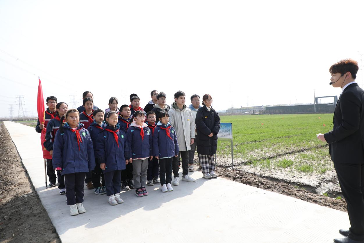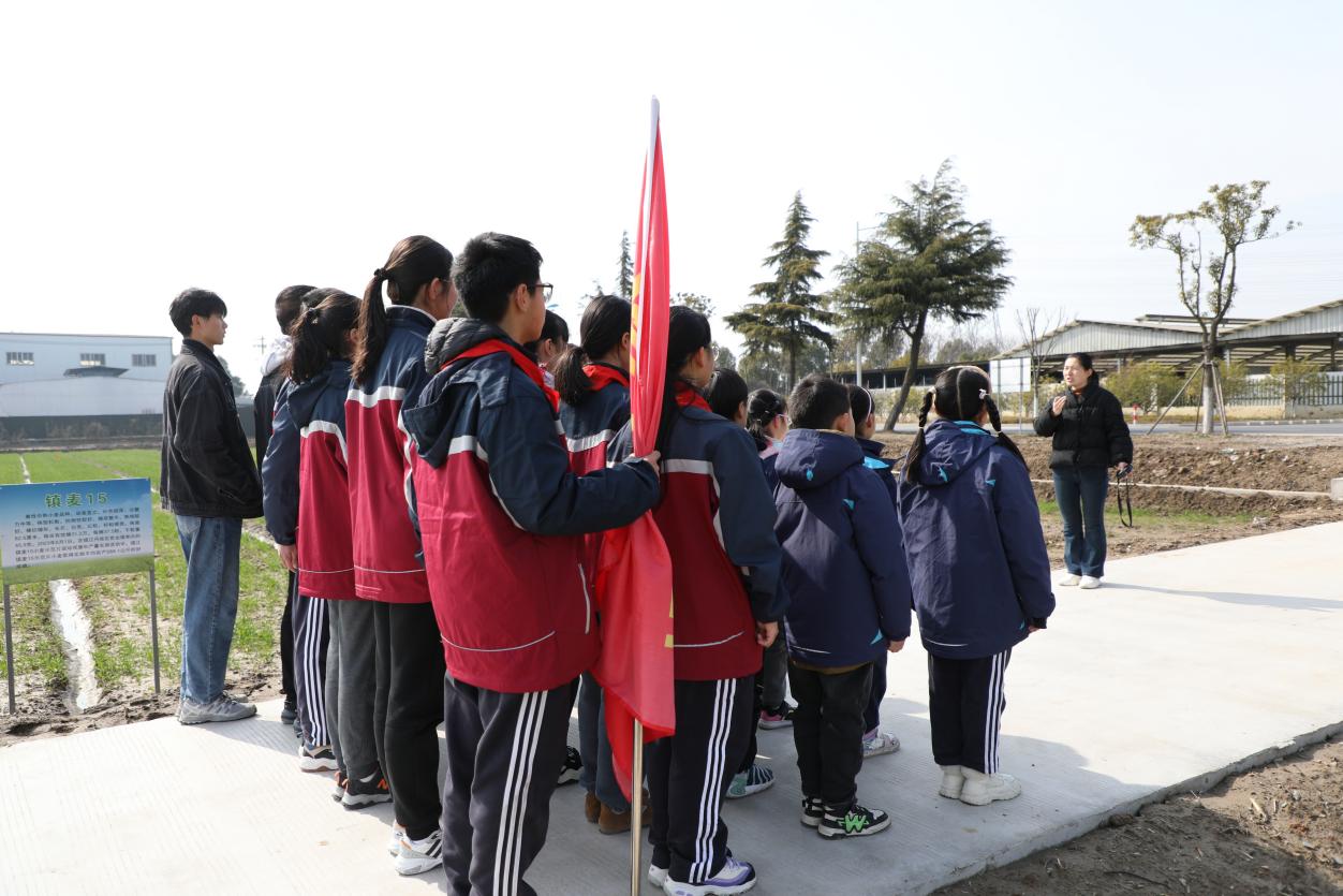 “大家看我们的右手边,是江苏现代农业(稻麦)产业技术体系新区推广示范基地的试验田,这里展示了20个优质小麦新品种,主要是镇麦、扬麦、宁麦系列,左手边是镇麦18高产创建田……”在润果农业发展有限公司的农田边,“新禾”先锋队成员认真聆听着介绍。
