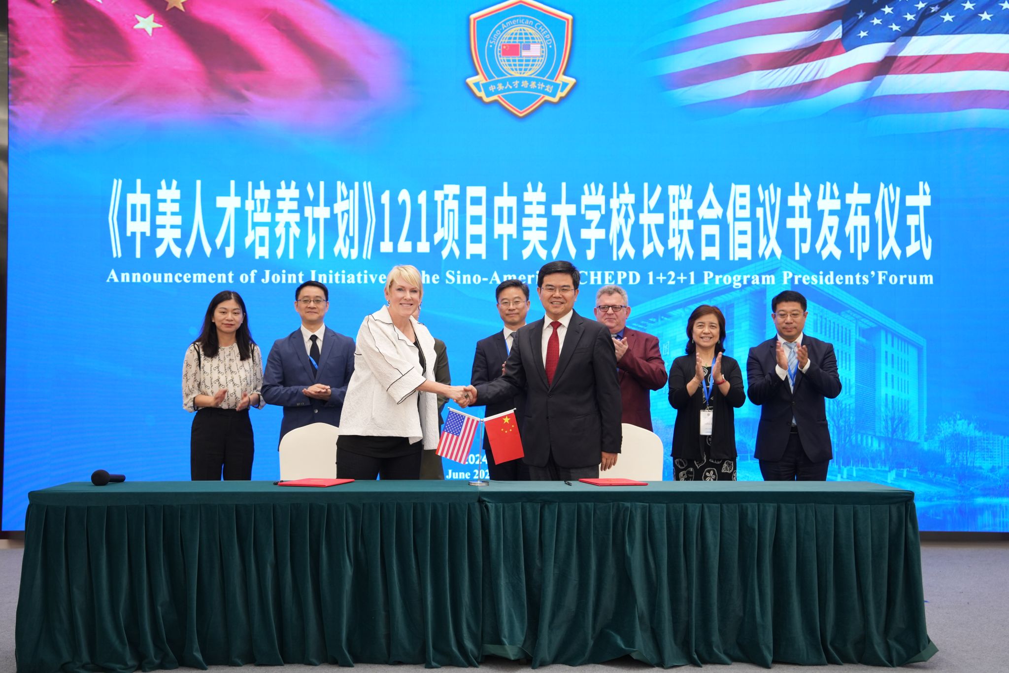 毕业典礼上,中美大学校长为毕业生代表颁发学位证书,还表彰了《中美人才培养计划》121项目2024年度优秀毕业生奖、杰出毕业生奖和卓越毕业生奖。
