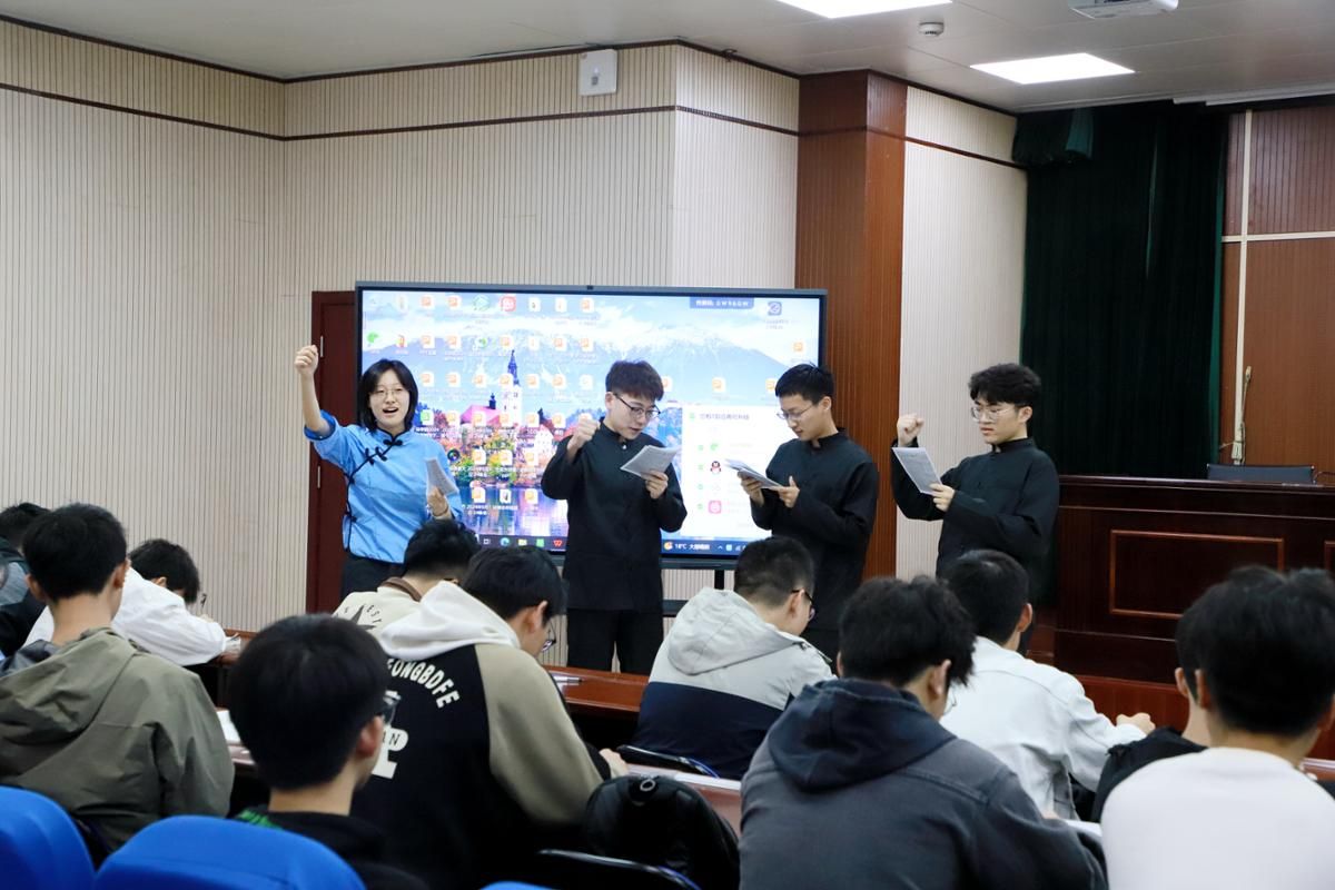 课上布置作业,班级全员排练,课堂分组展演,在思政课教师金丽馥的指导下,开云手机平台金山英才班和卓越工程师班的200多名学生围绕课程教学内容,结合“五四运动”历史场景,通过演讲、朗诵、情景剧等形式,把思政课堂变成舞台,让思政课焕发活力,展现风采。