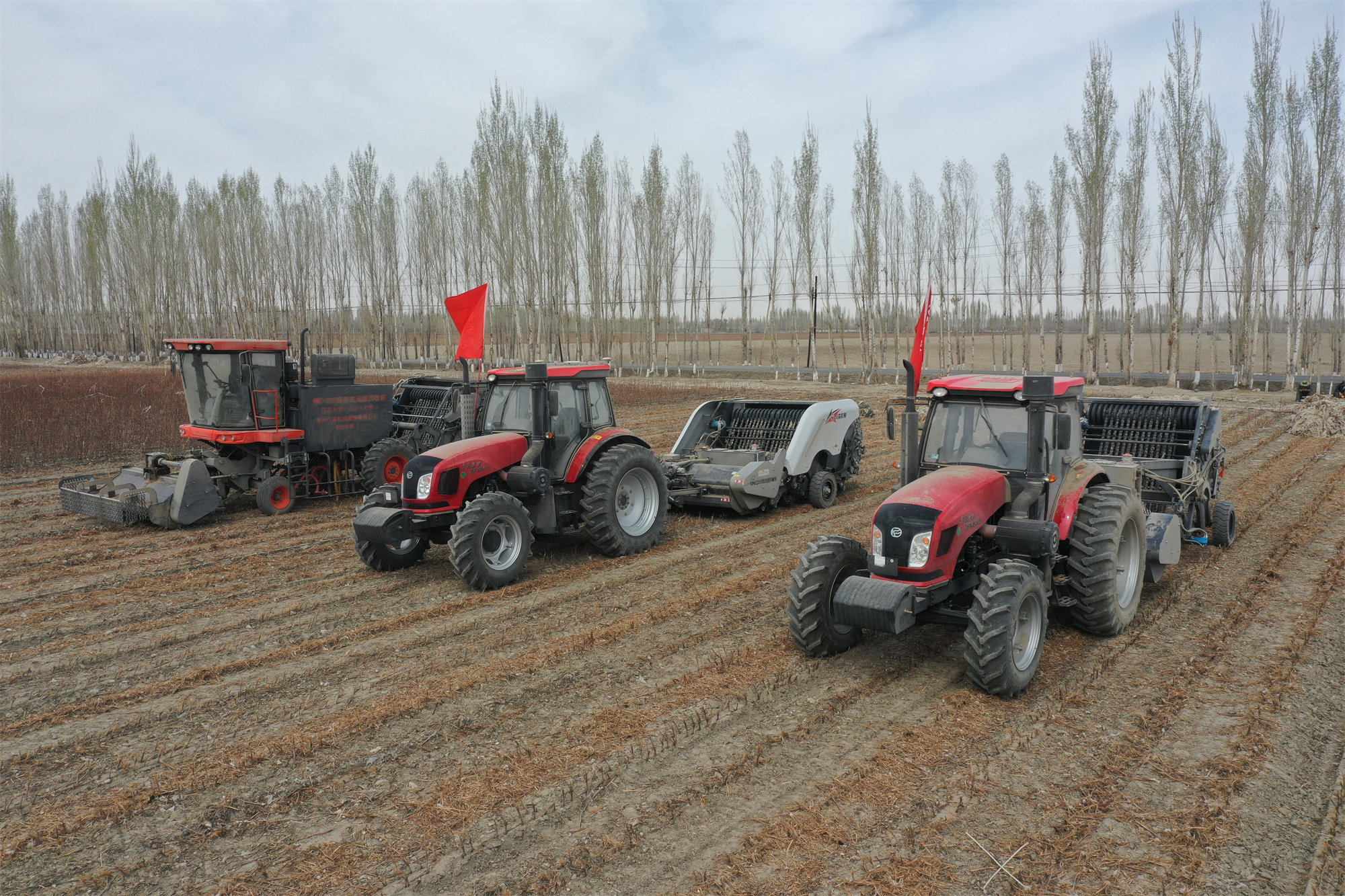 团队研发的秸秆粉碎还田残膜回收机在新疆沙湾县作业 受访者供图
